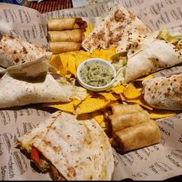 د.م. 370,00Complete Mexican feast with burritos quesadilla flautas tostada and soft tacos. Perfect for sharing!
