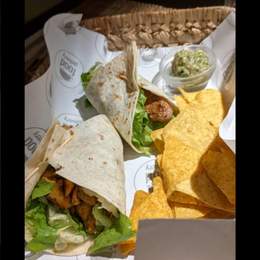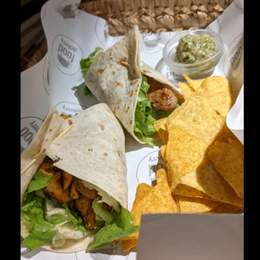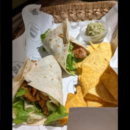 د.م. 85,00Large burrito with guacamole cheese rice and chicken. A hearty Mexican meal.