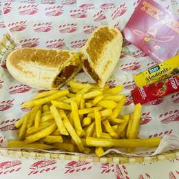 د.م. 80,00Super sandwich with chopped steak and fries. Well garnished.