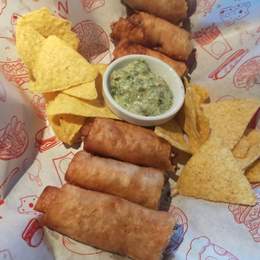 د.م. 80,00Traditional Mexican flautas (Mexican nems). Served with chips or fries.